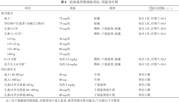 推荐意见3进行流感暴露前抗病毒药物预防,首选奥司他韦(2C)。对于反复暴露风险高且药物耐受良好的高危人群,可适当延长疗程(2D)。